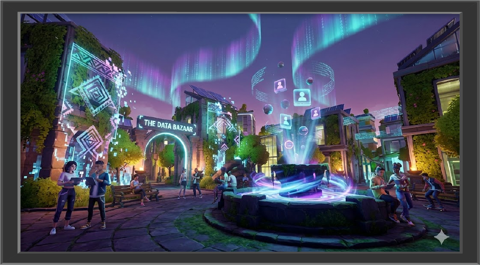 3. Veri Çarşısı (Eşitlik Evreni) Akran Projesi’nin dijital kalbi. Tarihi dokunun fütüristik neonlarla buluştuğu bu meydanda hiyerarşi yoktur. Her genç, fikirlerini özgürce havuza aktarır ve kentin “eşit tasarımcısı” olarak söz sahibi olur.